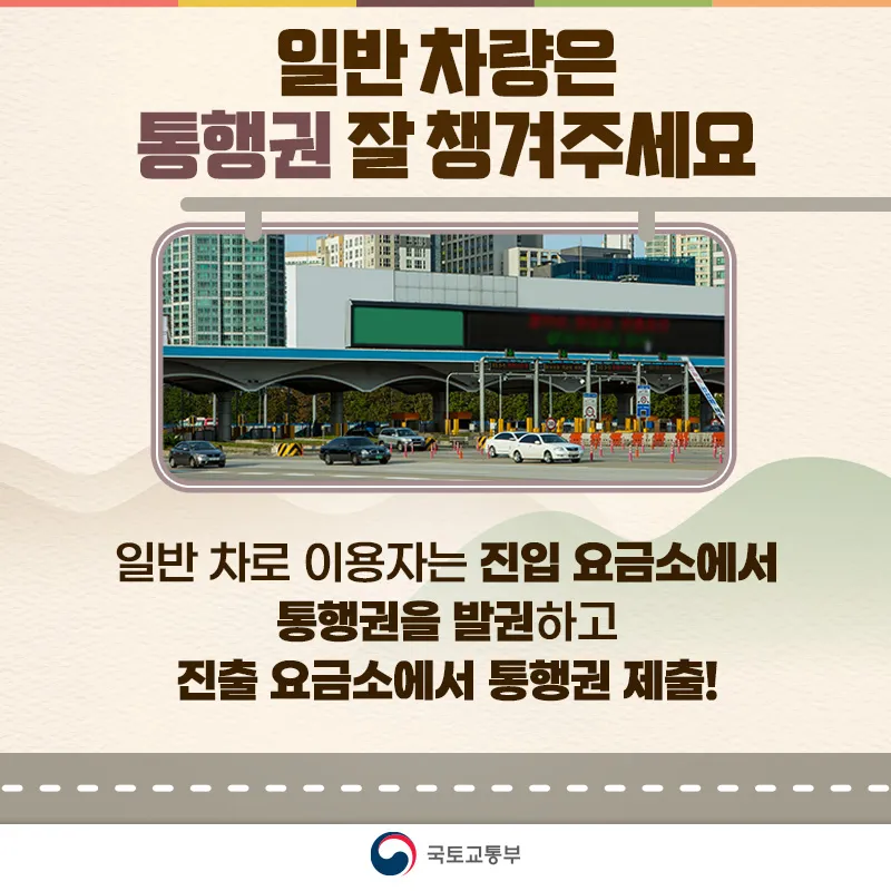 일반차량은 통행권은 일단 발권하고 나가면서 통행권을 제출하시면 됩니다.