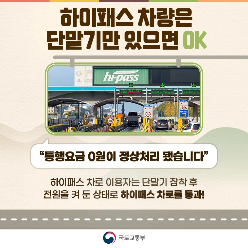 하이패스 차량은 단말기만 부착되어 있으면 자동으로 적용됩니다.
